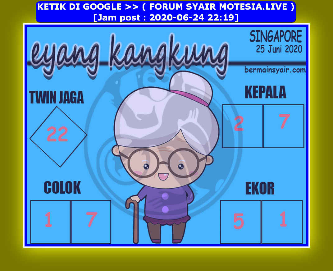 Forum Syair Sgp Dan Prediksi Togel Hari Ini. Forum syair sgp 8 Mei 2023 maupun kode syair sgp 08/05/2023 toto hari ini ialah prediksi rumus angka togel yang telah keluar sebelumnya, gambar syair sgp & code syair singapore yang telah kami kumpulkan dari berbagai forum syair yaitu : ( syair batarakala, syair opesia, syair bd, syair asiktoto. Kode Syair Singapore dan prediksi Sgp ini hari Kamis 14 April 2022akan saya beri dengan jelas pada kode syair sgp. Supaya Anda dapat saksikan langsung gabungan angka tepat sgp sesuai skema dan status nya. Prediksi syair sgp mbah semar ini ialah racikan saya yang cukup tepat dan tepat, dan berkesempatan besar datang pada result sgp ini hari.